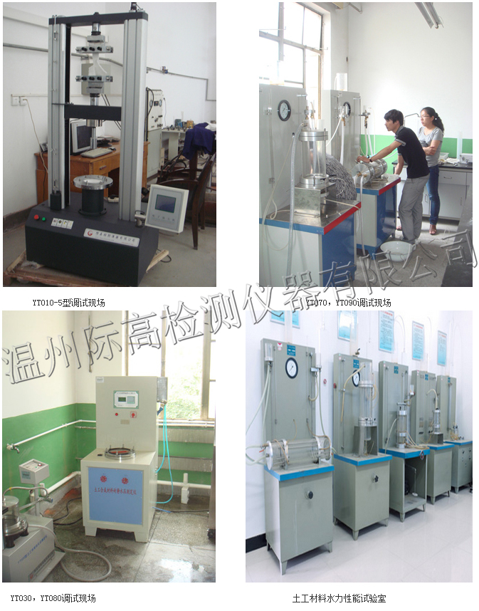 际高检测仪器有限公司,独立设计生产完成了该院土工材料检测项目的全套设备。包括:YT010型电子土工布强力综合试验机,YT020土工布透水性测定仪,YT030G型土工布有效孔径测定仪,YT040型土工布动态穿孔试验仪,YT050型土工布磨损试验仪,YT060型土工布厚度仪,YT070型土工合成材料水平渗透仪,YT080型土工合成材料耐静水压测定仪(土工膜抗渗仪),YT090型排水板通水仪,YT1201型紫外老化试验箱等十多套仪器。