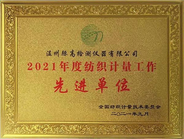 近日,全国纺织计量技术委员会2021年度年会在无锡召开。会上,温州际高检测仪器有限公司荣获“2021年度纺织计量工作先进单位”。.